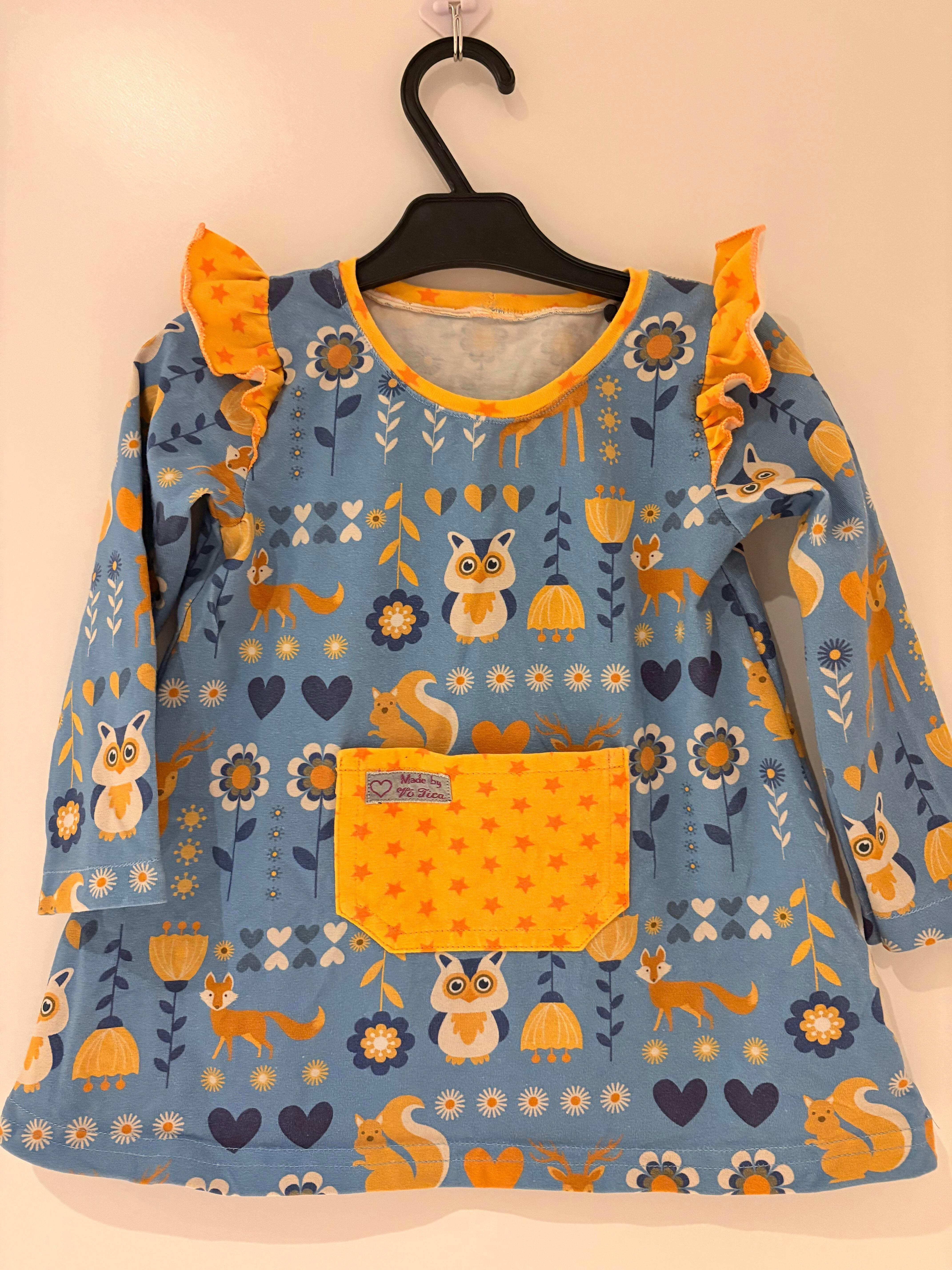 Measure the child and pick a size based on the child’s measurements. Have a look at the measurement for the finished garment and compare with the child’s measurements. I recommend choosing a size that has 3-5 cm (1-2”) larger chest width than the child. Ester & Ebbe has been designed for fabric with at least 30% stretch.
